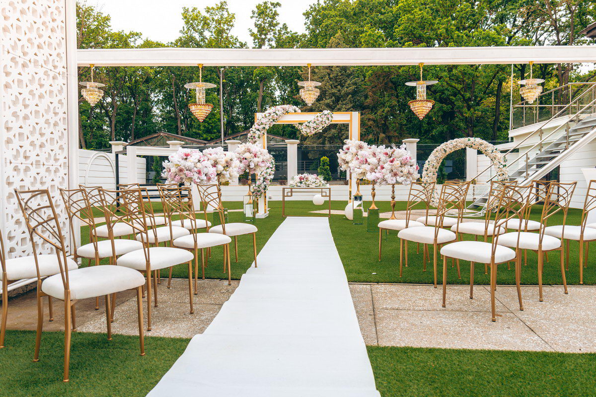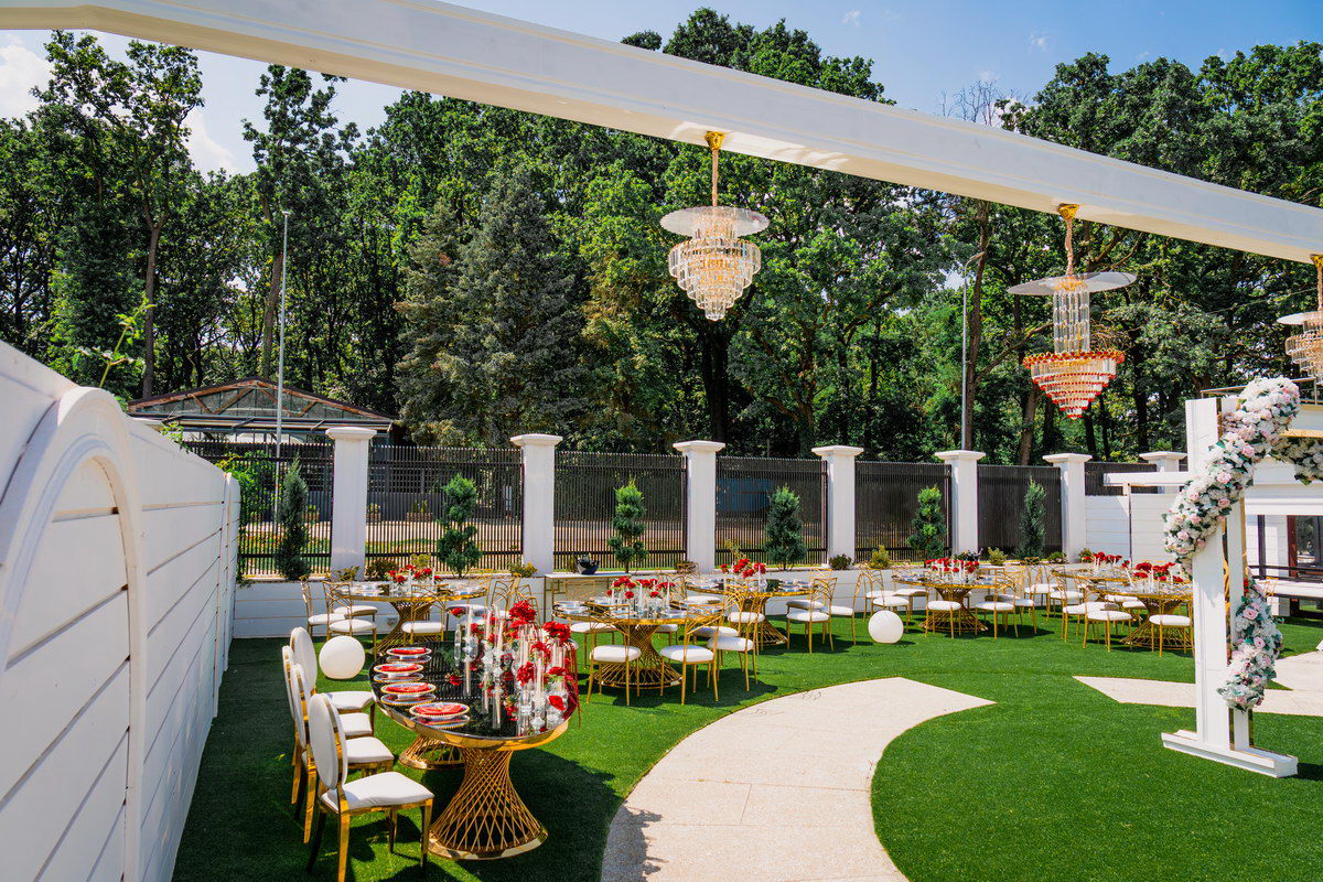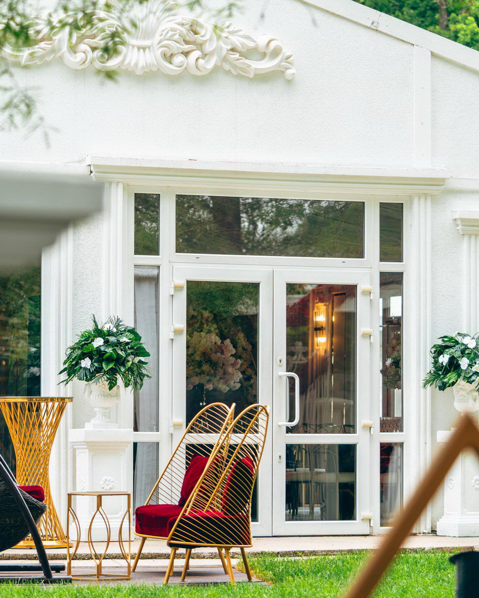 Albul, ce emana puritate, se combina perfect cu exteriorul verde si aranjamentele florale, dand senzatia de un spatiu in comuniune cu natura. In functie de luminile ambientale si jocul de culori, sirul povestii continua conform dorintelor clientilor.