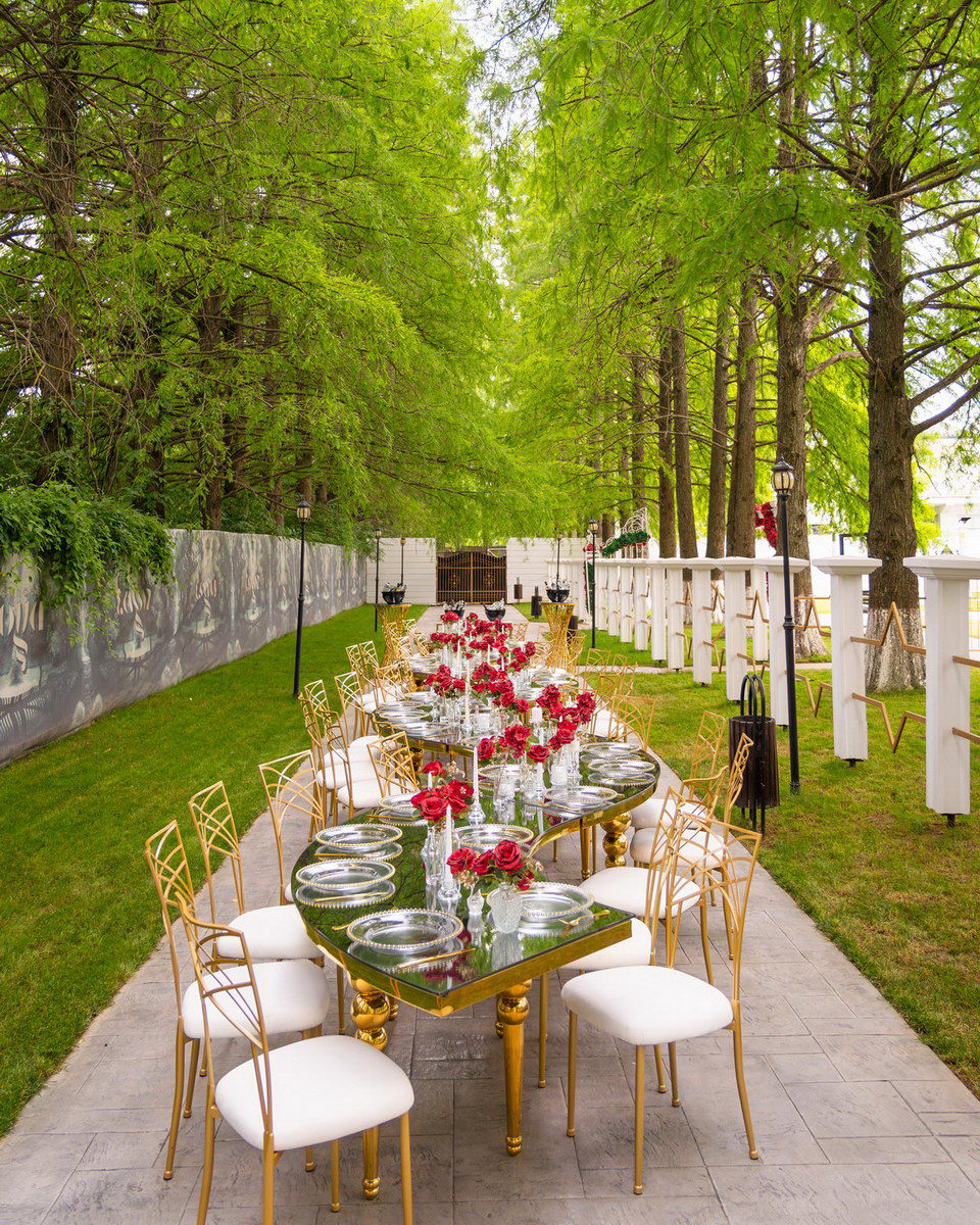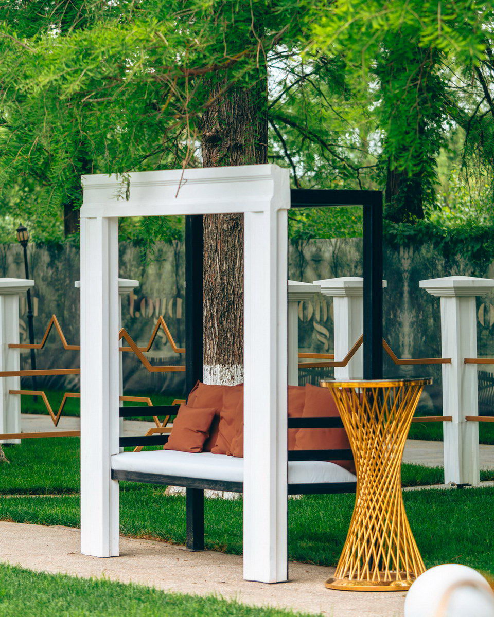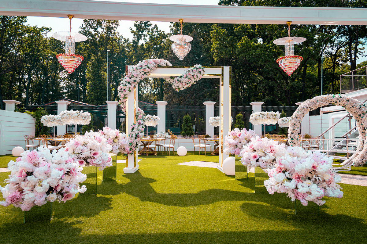 Albul, ce emana puritate, se combina perfect cu exteriorul verde si aranjamentele florale, dand senzatia de un spatiu in comuniune cu natura. In functie de luminile ambientale si jocul de culori, sirul povestii continua conform dorintelor clientilor.